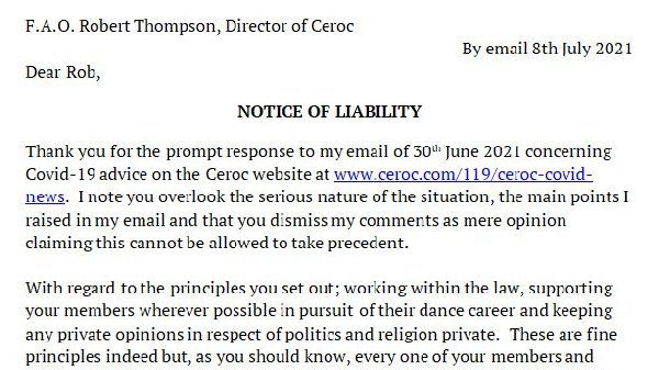 Notice of Liability issued to the Director of the Ceroc Dance Organisation in the UK